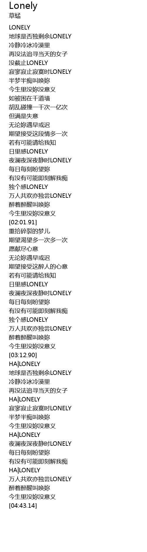 | [02:59.55] | wàn rén gòng huān yì dú cháng LONELY |