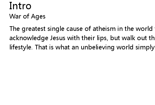 | The greatest single cause of atheism in the world today is Christians, who acknowledge Jesus with their lips, but walk out the door and deny Him by their lifestyle. That is what an unbelieving world simply finds unbelievable. |