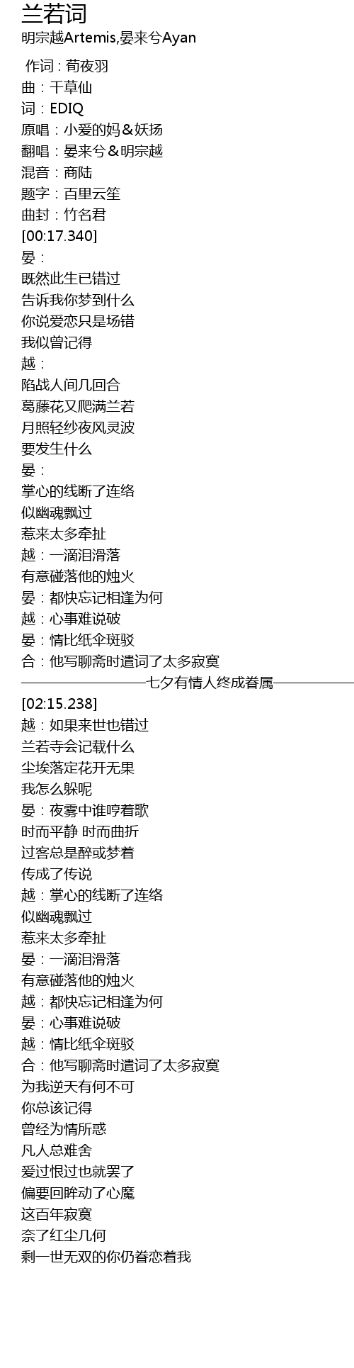 | [00:08.910] | 翻唱:晏来兮&明宗越 |