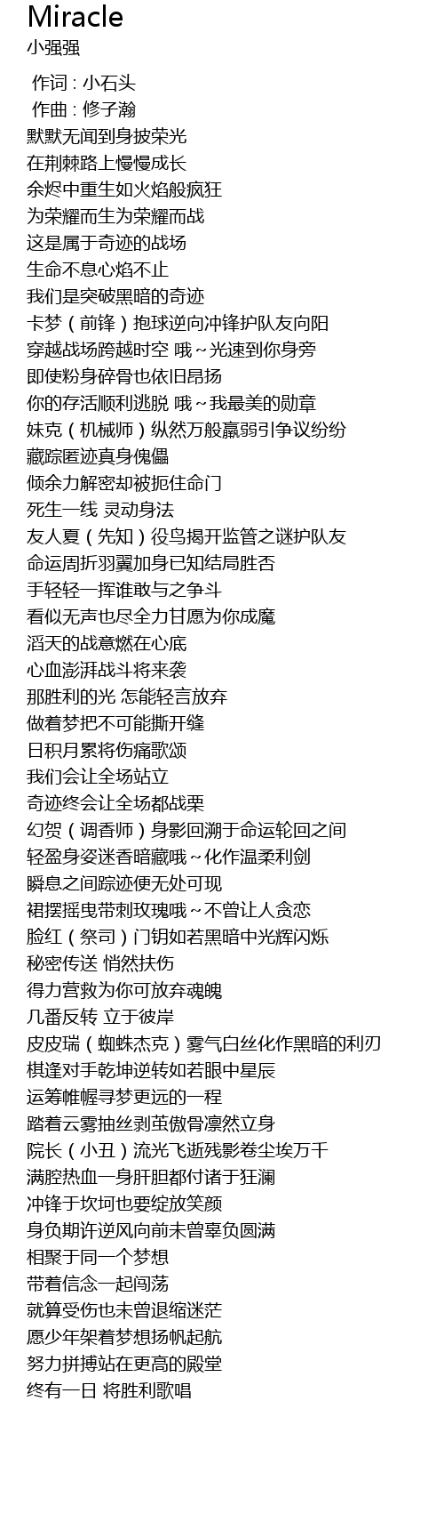 | [00:33.47] | 为荣耀而生为荣耀而战 |