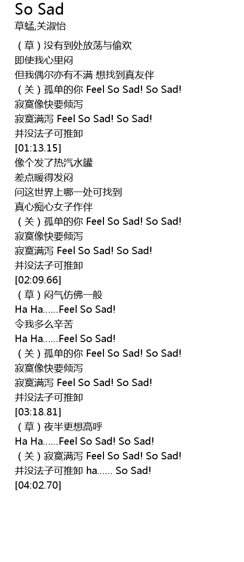 | [02:40.01] | Ha Ha……Feel So Sad! |