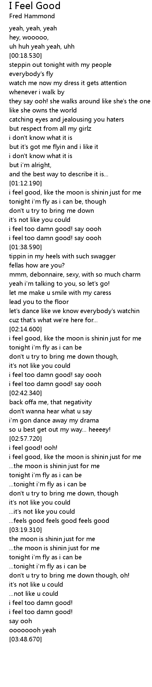 | [02:14.960] | i feel good, like the moon is shinin just for me |