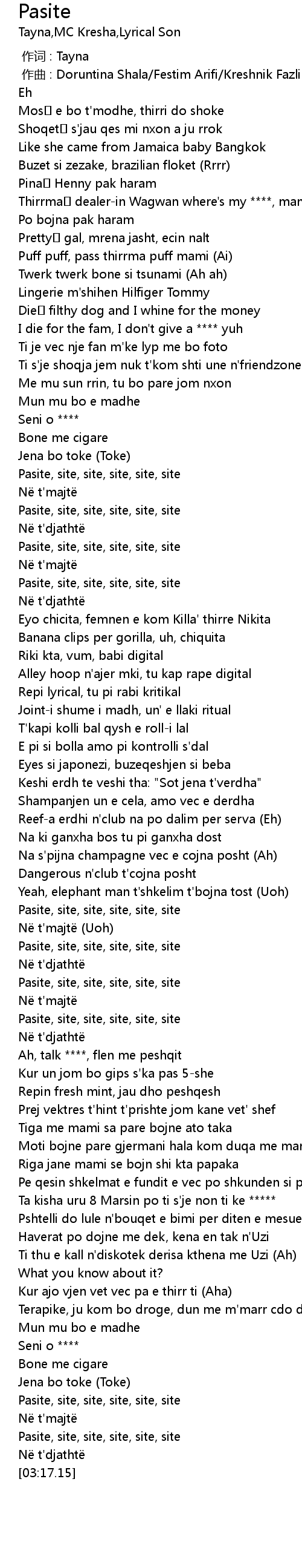 | [02:53.94] | Terapike, ju kom bo droge, dun me m' marr cdo dite Ah |