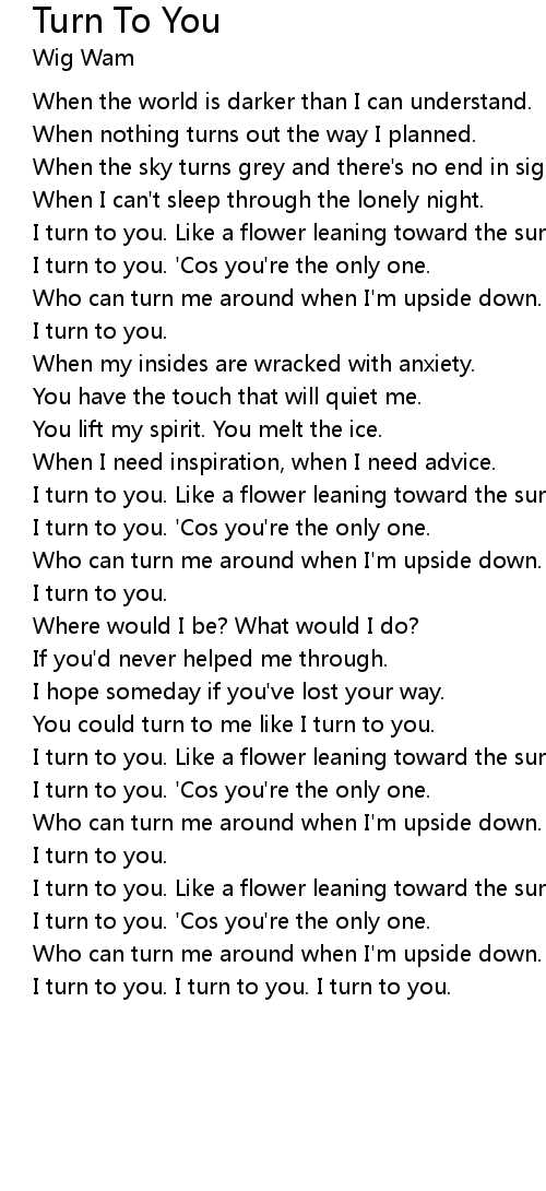 I turn to you. I turn to you. I turn to you. |