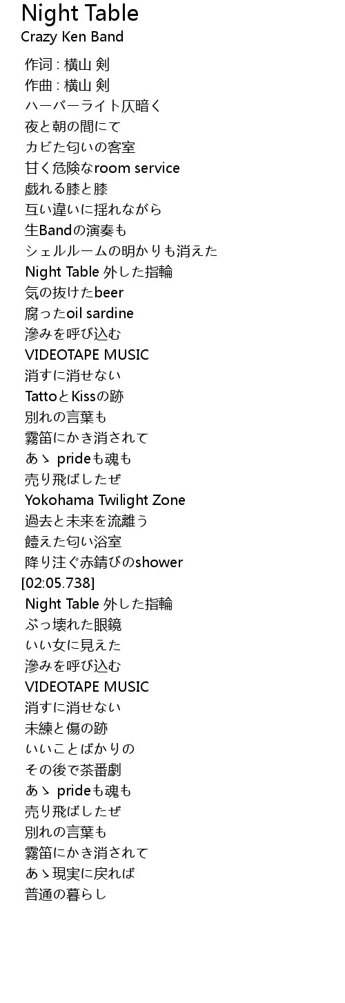| [02:27.291] | Night Table 外した指輪 |