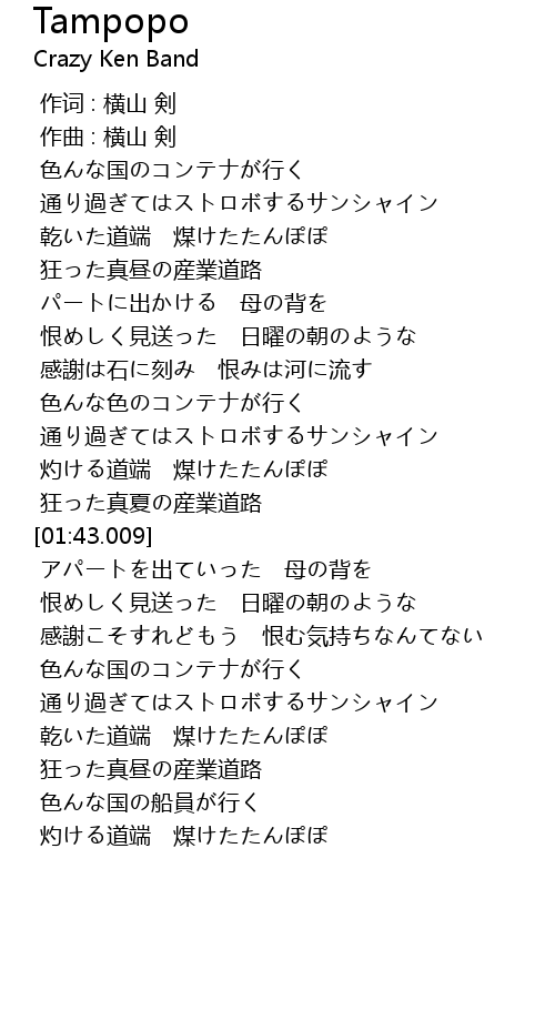 | [00:01.000] | 作曲 : 横山 剣 |