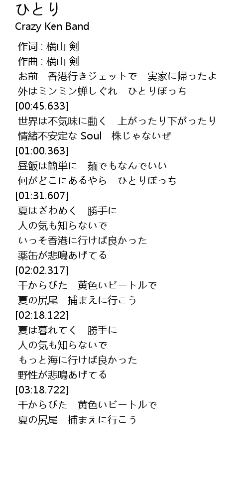 | [00:00.000] | 作词 : 横山 剣 |