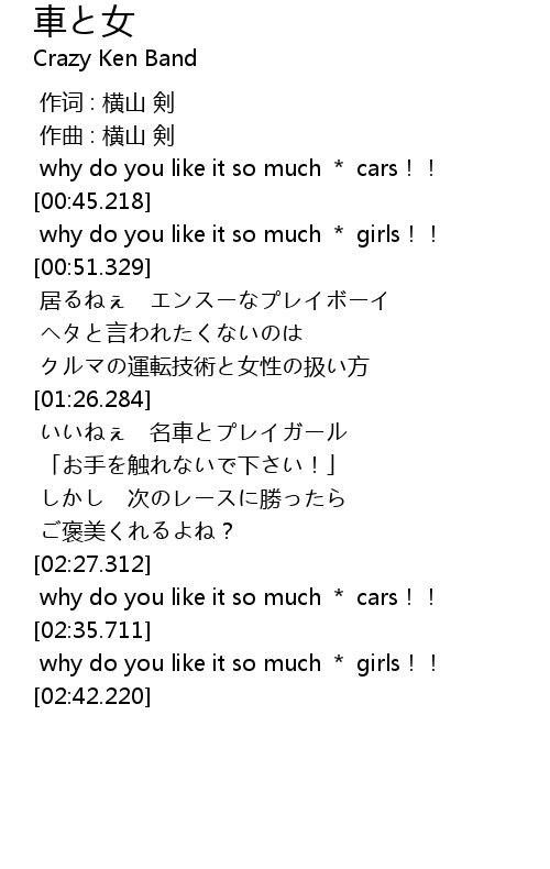 | [02:31.838] | why do you like it so much * cars!! |
