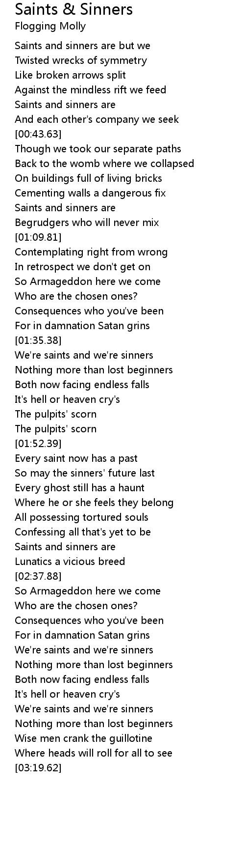Saints and sinners are but we |