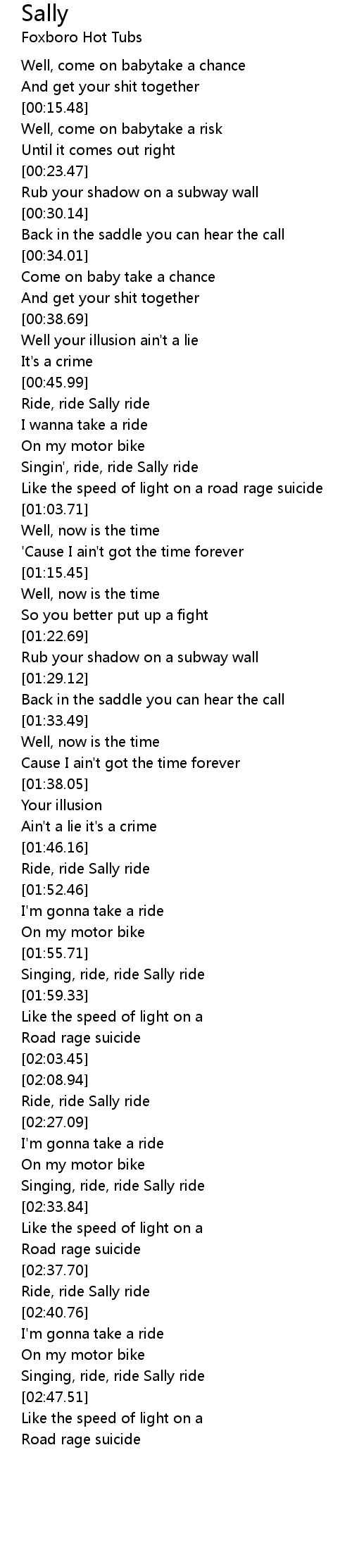 Singin', ride, ride Sally ride |