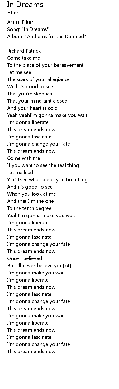 Song: "In Dreams" |