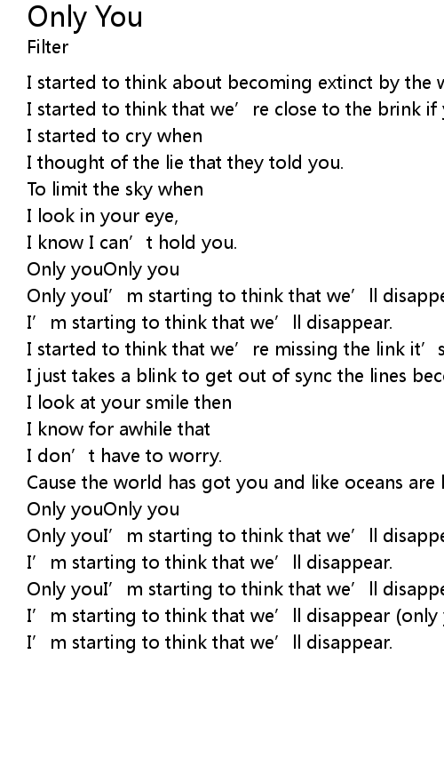 | Only youI’m starting to think that we’ll disappear (only you). | |