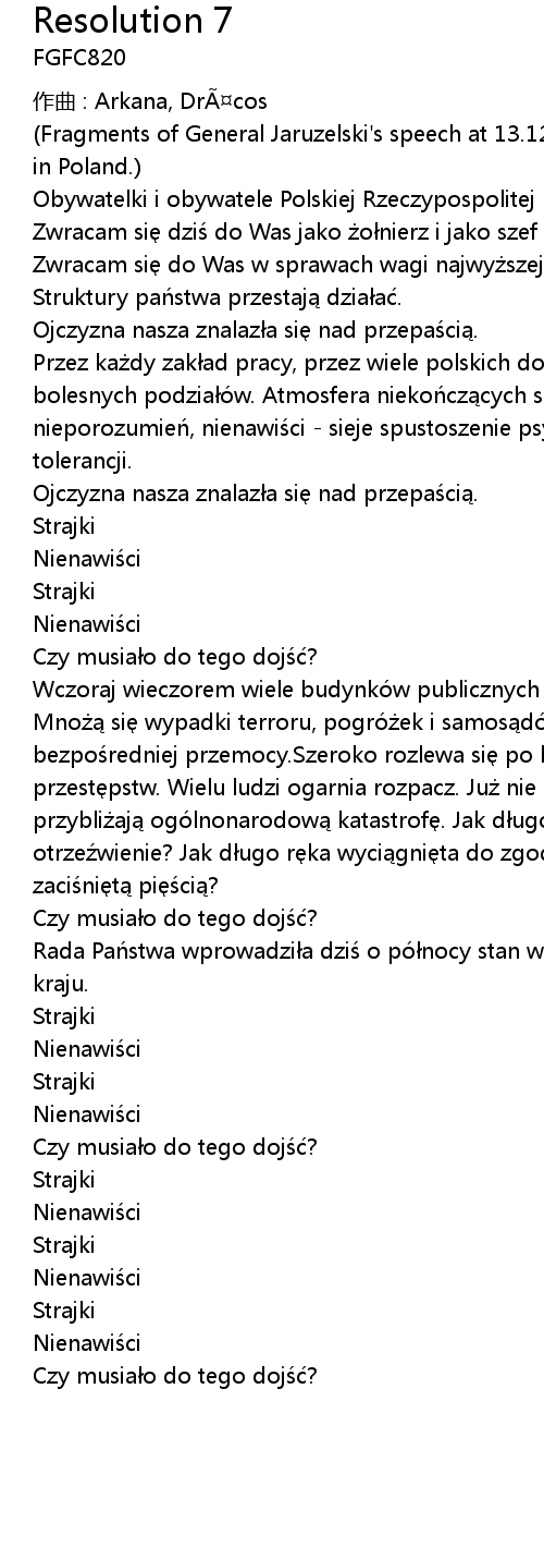 | 歌曲 | Resolution 7 |