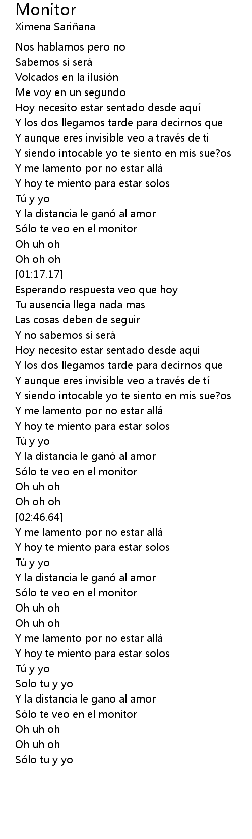 | [02:34.40] | So lo te veo en el monitor |