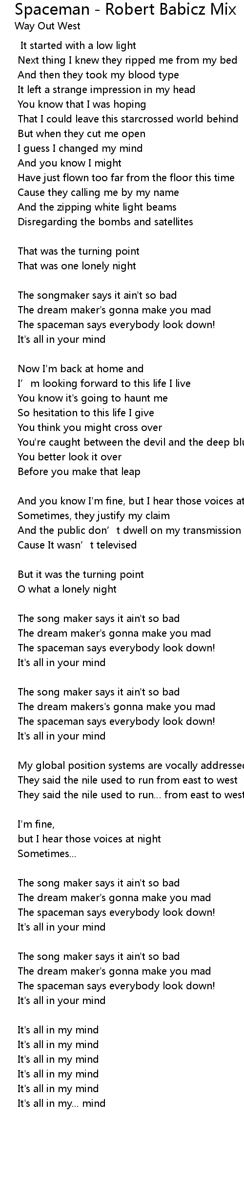| 歌曲 | Spaceman - Robert Babicz Mix |