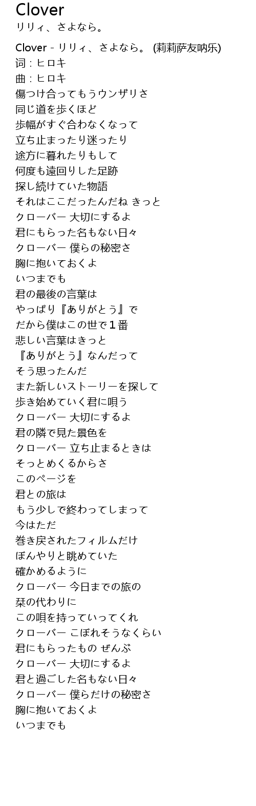 | [00:00.00] | Clover - リリィ、さよなら。 (莉莉萨友呐乐) |