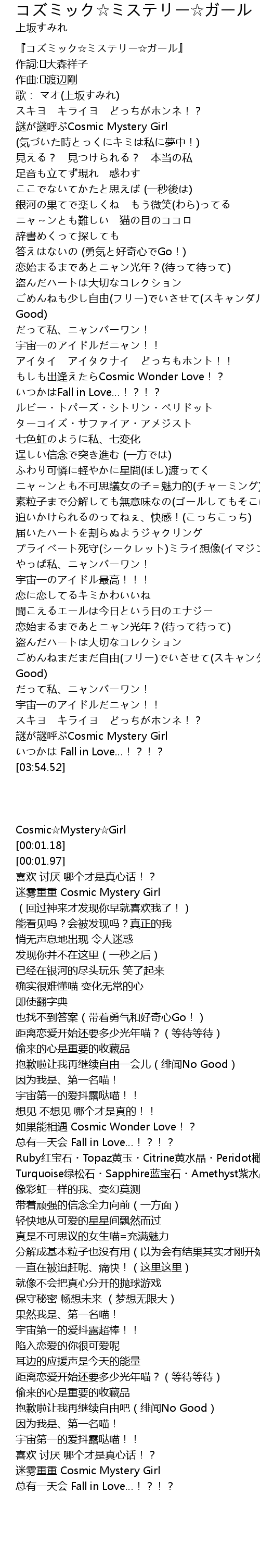 | [00:00.82] | Cosmic☆Mystery☆Girl |