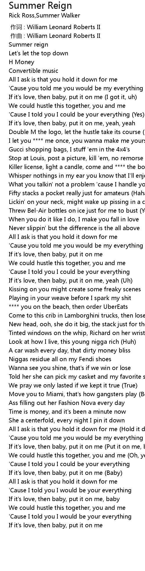 | [02:51.93] | If it' s love, then baby, put it on me Put it on me, baby, yeah |