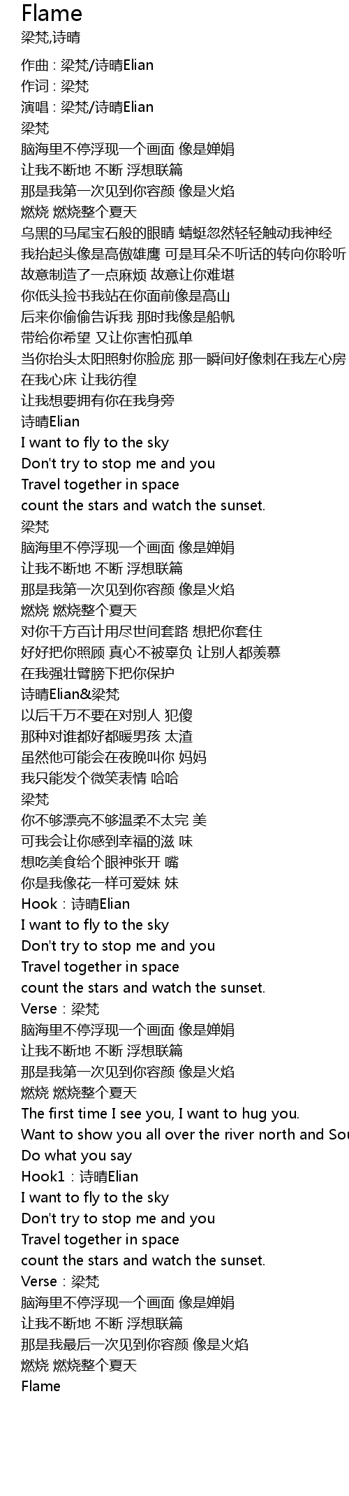 | [00:10.95] | 演唱 : 梁梵/诗晴Elian |