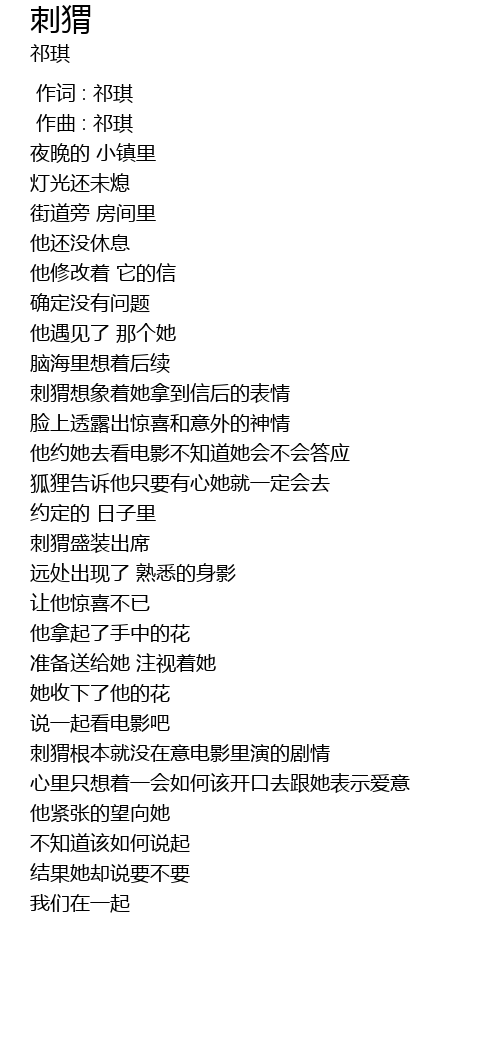 | [00:00.000] | 作词 : 祁琪 |