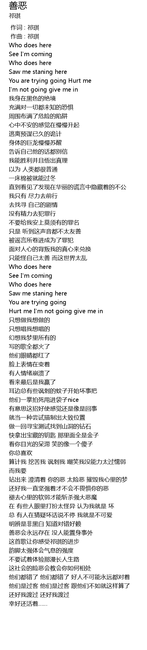 | [02:10.352] | 站出来 澄清着 你的恶 太险恶 摧毁我心里的梦 |