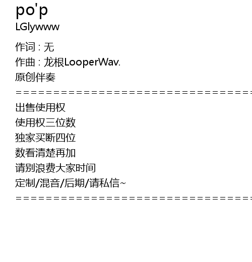 作曲 : 龙根LooperWav.