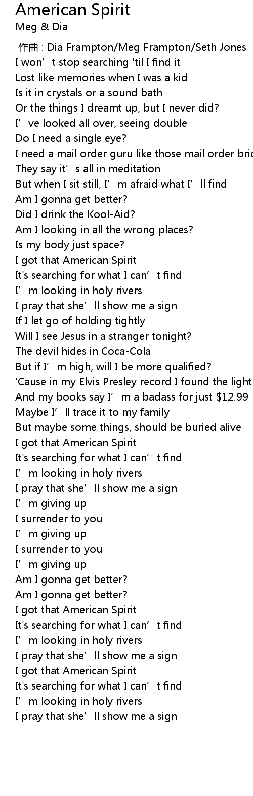 | [01:14.25] | I got that American Spirit |