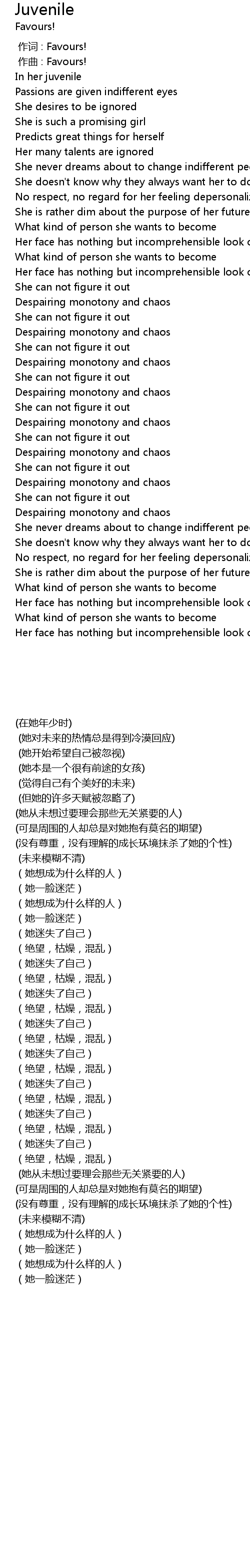 | [01:51.17] | (没有尊重,没有理解的成长环境抹杀了她的个性) |