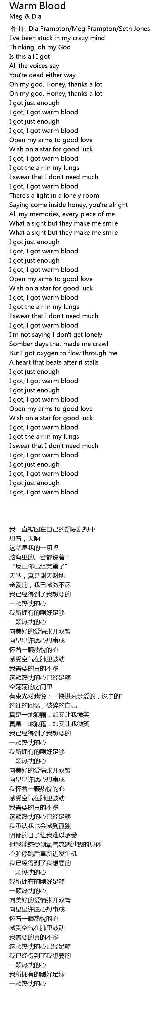 | [00:00.000] | 作曲 : Dia Frampton/Meg Frampton/Seth Jones |