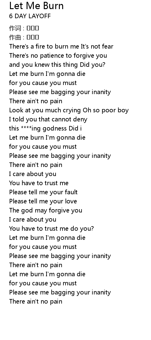 | 歌曲 | Let Me Burn |
