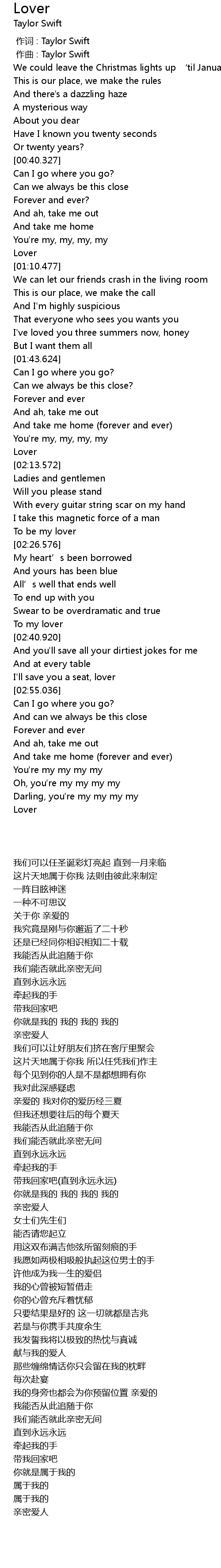 | [00:01.000] | zuo qu : Taylor Swift |