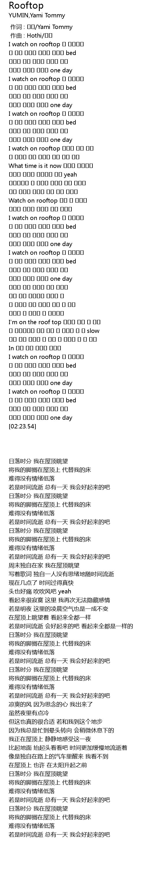 | [00:35.58] | I watch on rooftop 해 질때쯤에 |