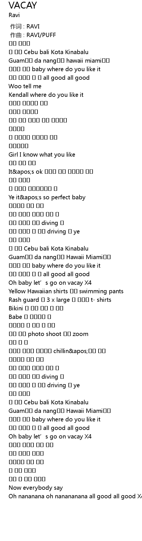 | [01:11.29] | Oh baby let' s go on vacay X4 |