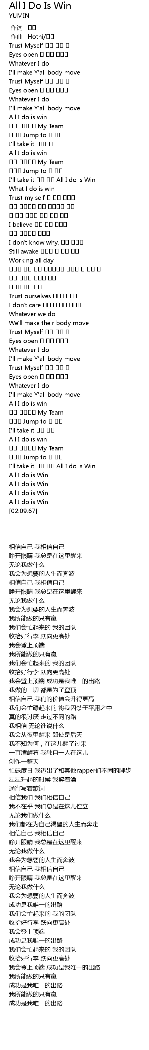 | [01:59.33] | All I do is Win |