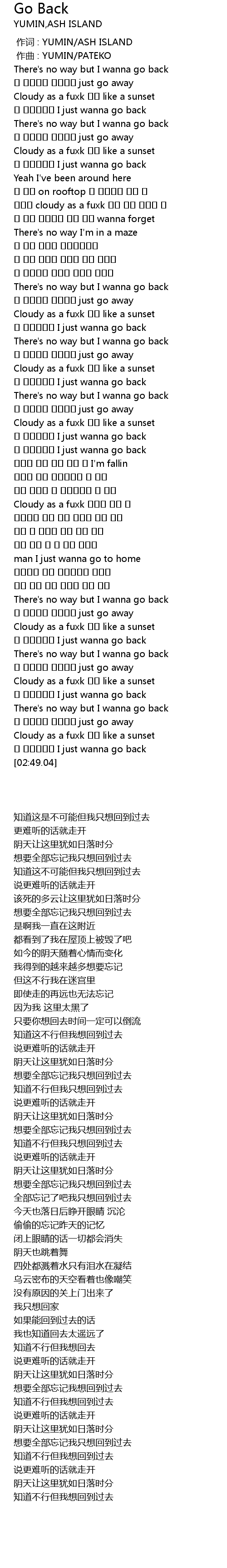 | [02:35.87] | There's no way but I wanna go back |