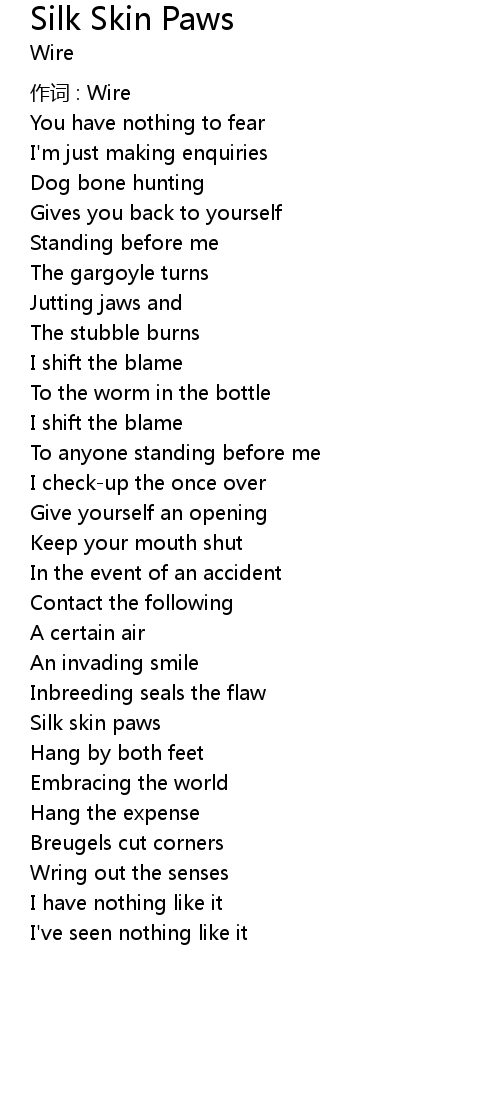 | 歌曲 | Silk Skin Paws |
