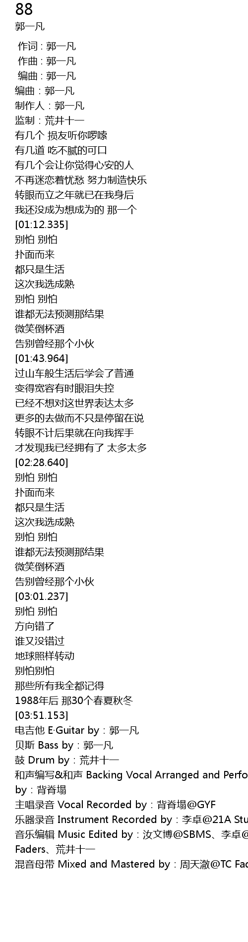 | [03:51.652] | 贝斯 Bass by:郭一凡 |