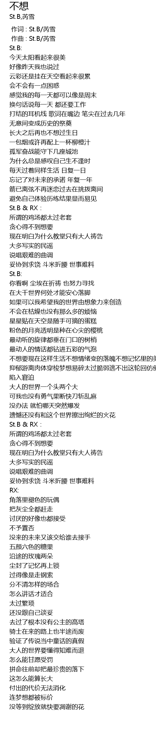 | [00:00.000] | 作词 : St.B/芮雪 |