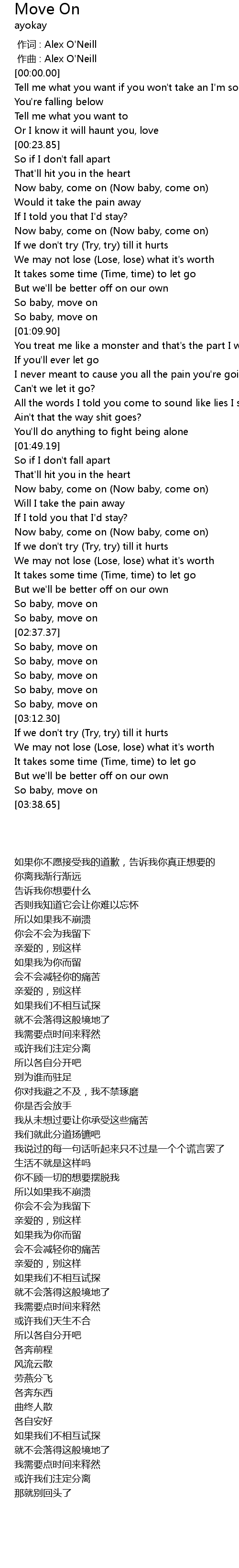 | [00:00.00] | zuò cí : Alex O' Neill |