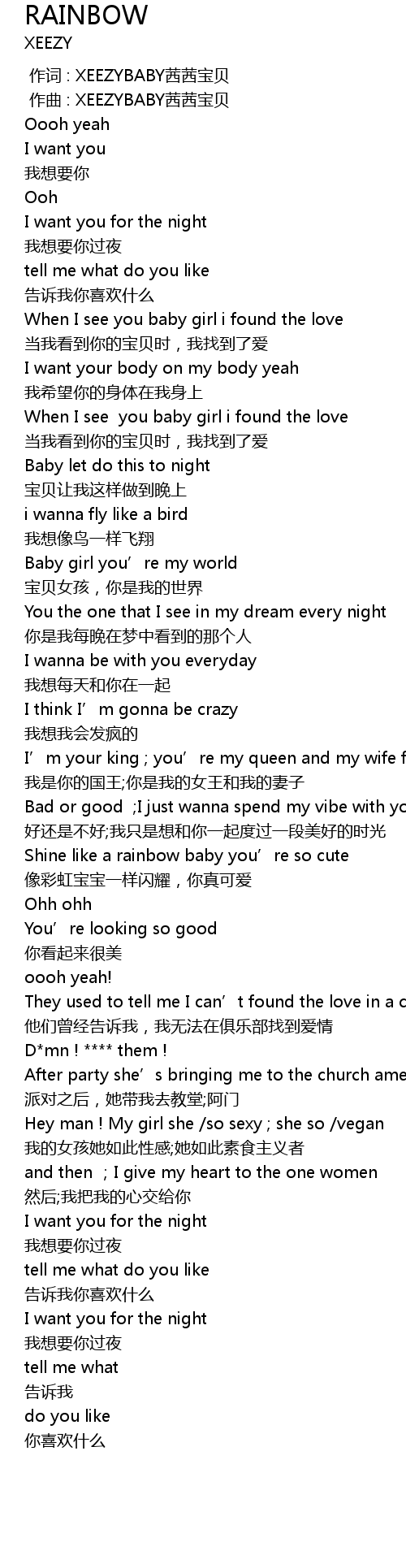 | [00:00.000] | 作词 : XEEZYBABY茜茜宝贝 |