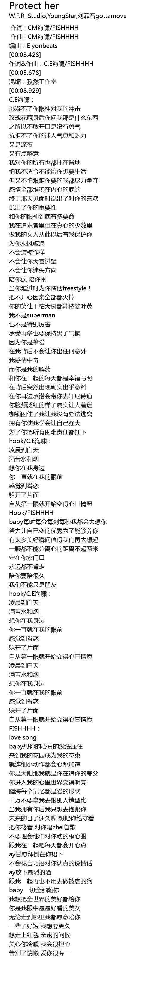 | [00:04.679] | zuò cí zuò qǔ: C. E hǎi xiào FISHHHH |