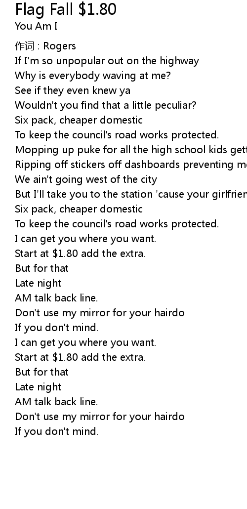 | 歌曲 | Flag Fall $1.80 |