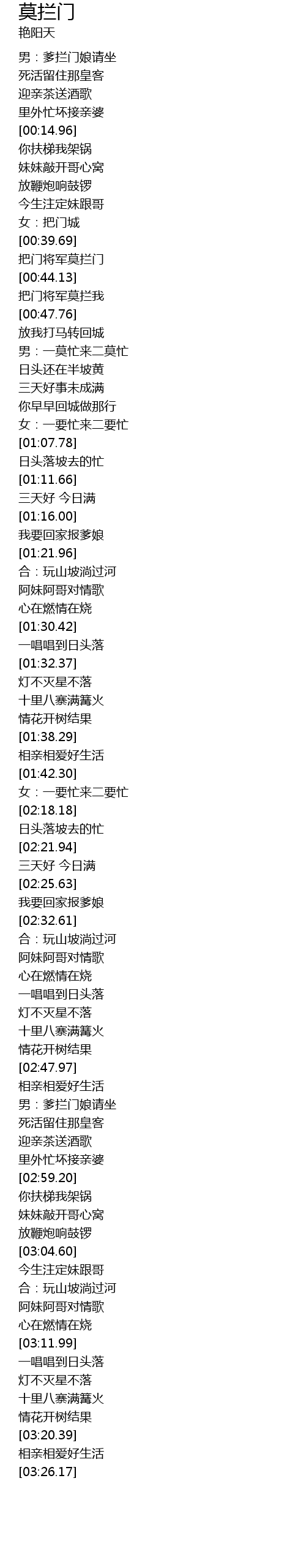 | [02:52.68] | 男:爹拦门娘请坐 |