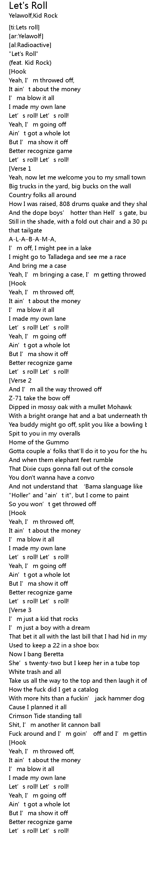 | [01:16.86] | Let' s roll! Let' s roll! |