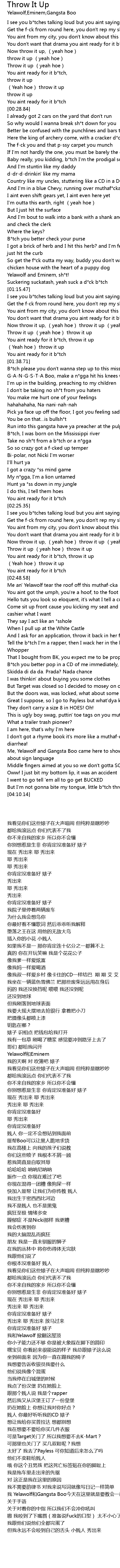 | [04:07.24] | But I' m not gonna bite my tongue, little b tch throw it up |