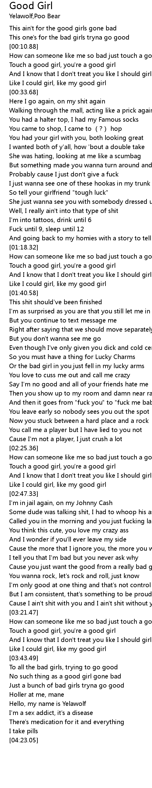 | [03:54.05] | No such thing as a good girl gone bad |