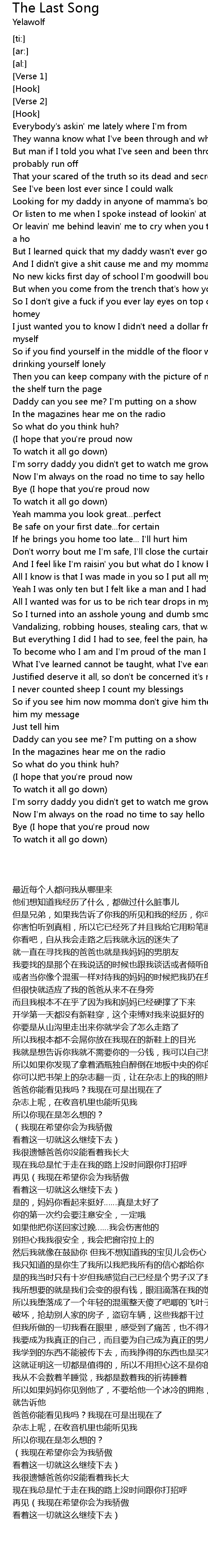 Or leavin' me behind leavin' me to cry when you treated my momma like a ho |