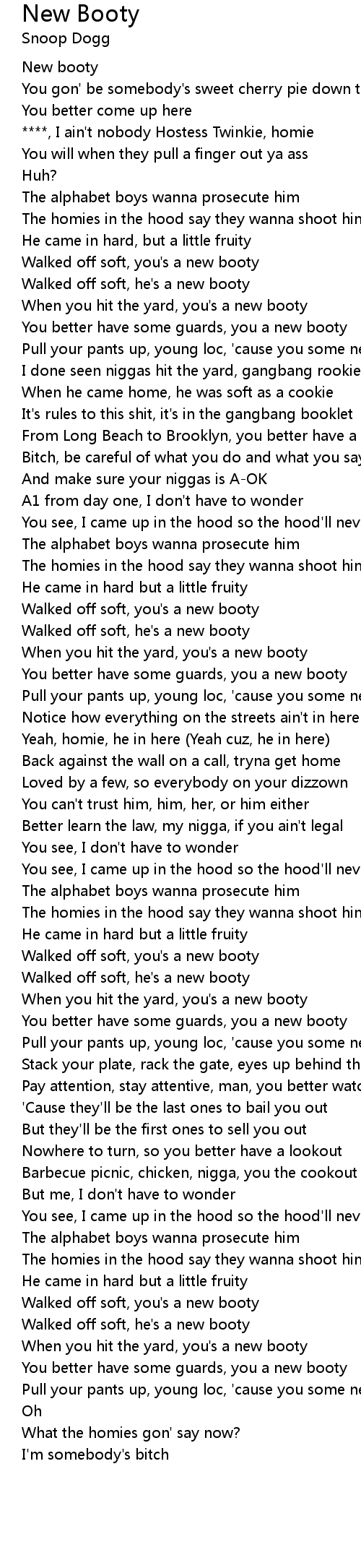 When you hit the yard, you's a new booty |