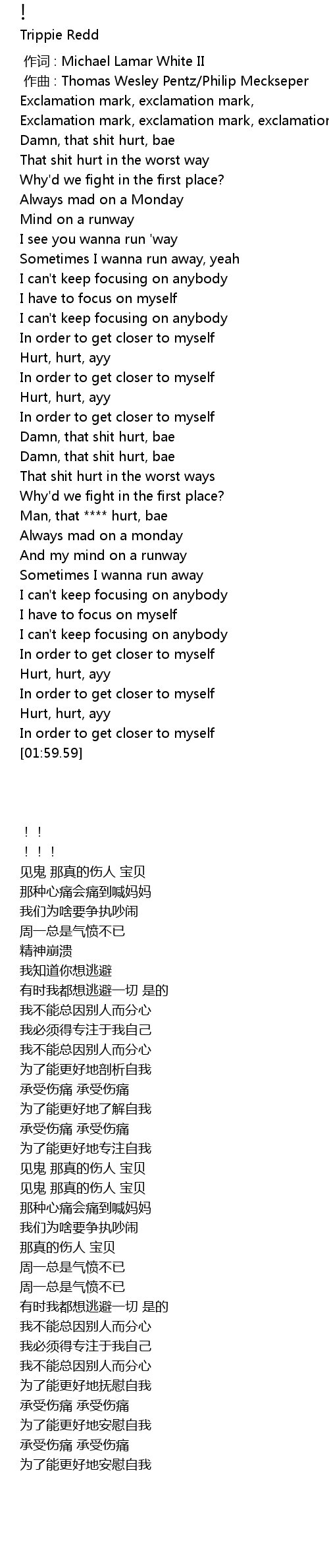 | [00:02.36] | Exclamation mark, exclamation mark, exclamation mark |