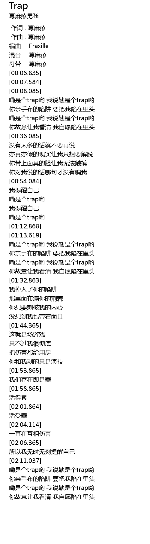 | [02:15.787] | lei shi ge trap yo wo shuo lei shi ge trap yo |